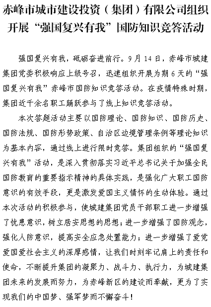 赤峰市城市建設(shè)投資(集團)有限公司組織開展“強國復(fù)興有我”國防知識競答活動
